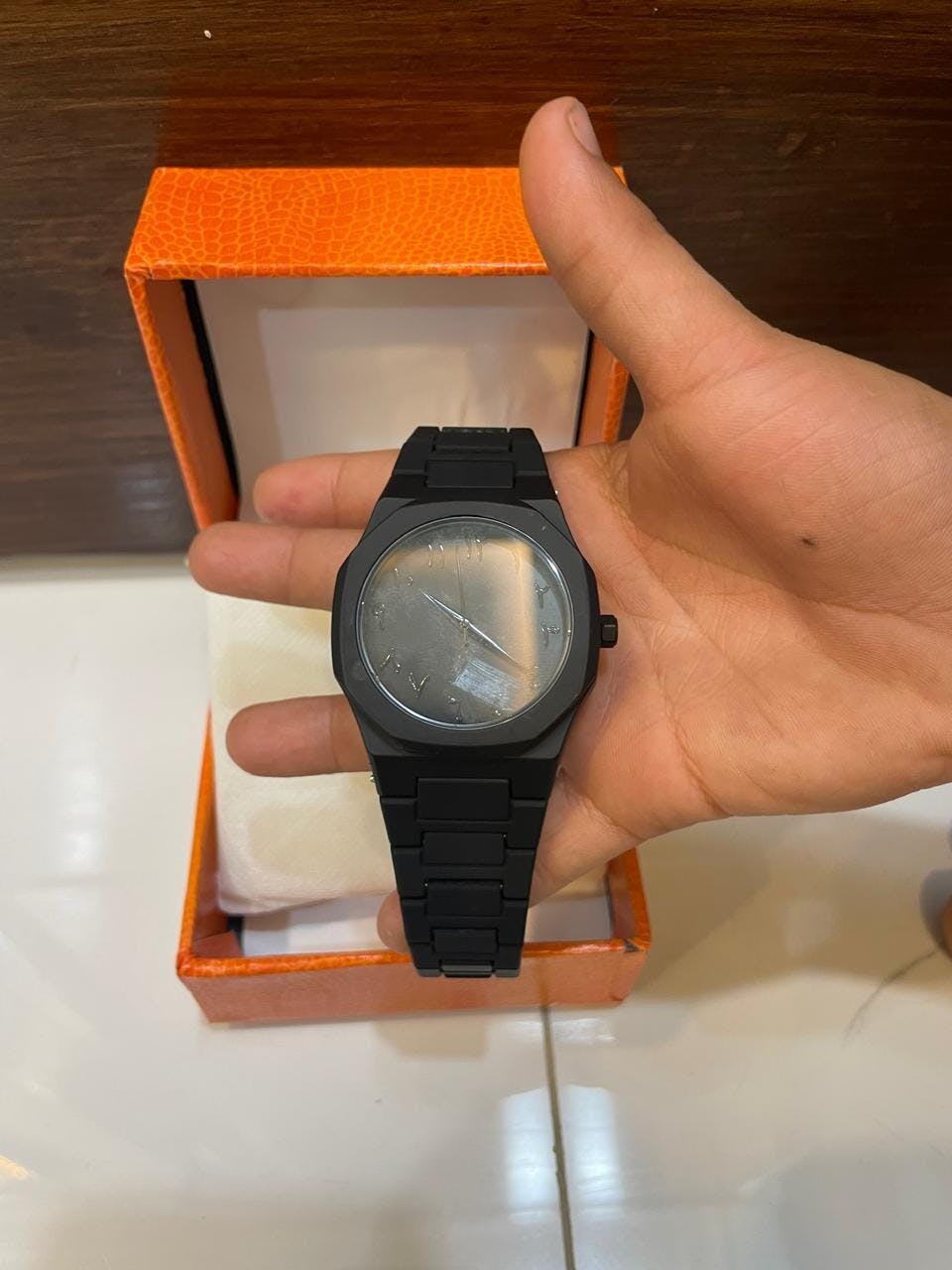 A perfect match for those who prefer a stealthy, understated, and unique style, this watch is versatile enough for casual wear, business meetings, or evening outings. The Arabic numerals add a distinctive cultural touch, making it a true conversation piece.