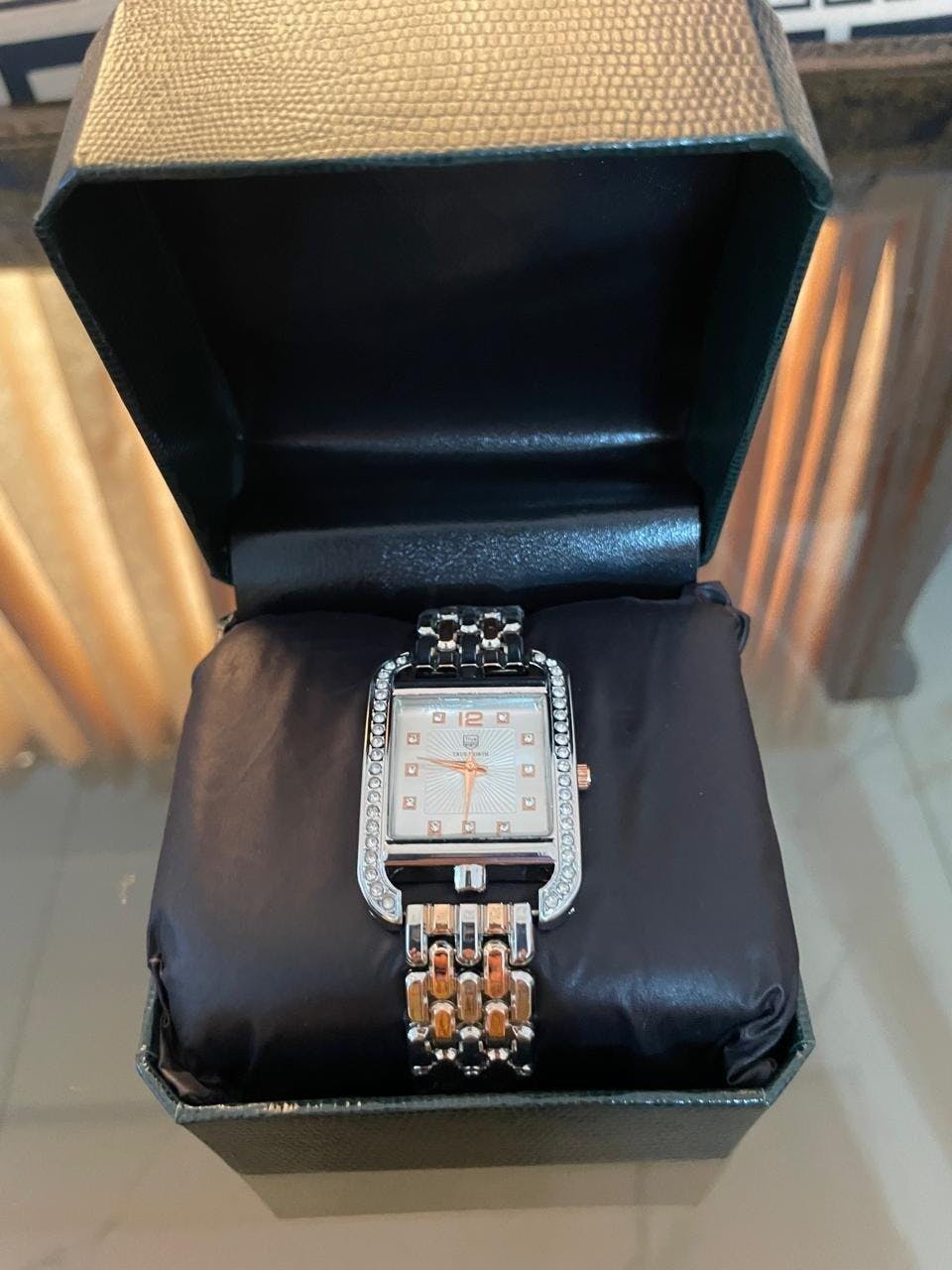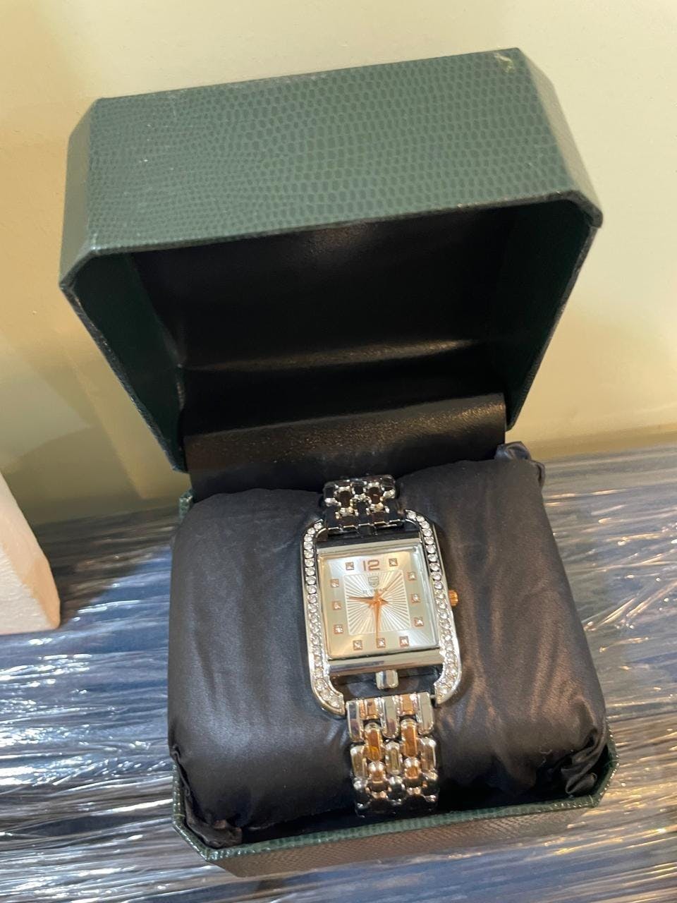 Rectangular crystal-studded bezel