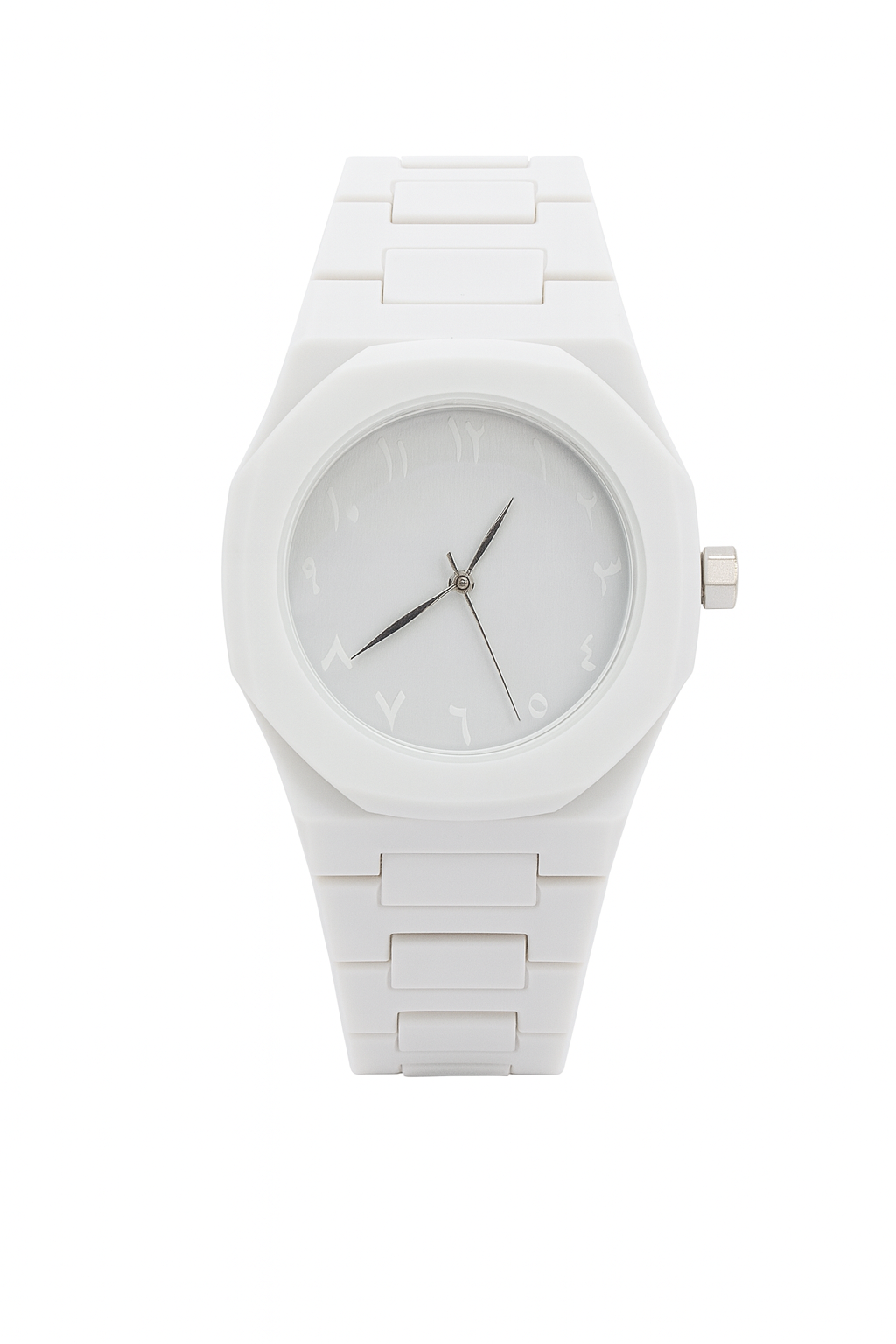 The all-white silicone body and strap create a sleek monochrome look, while the subtle Arabic numerals on the matching white dial add a refined cultural touch. Lightweight, durable, and perfectly balanced, this timepiece complements every outfit — from streetwear to smart casual.